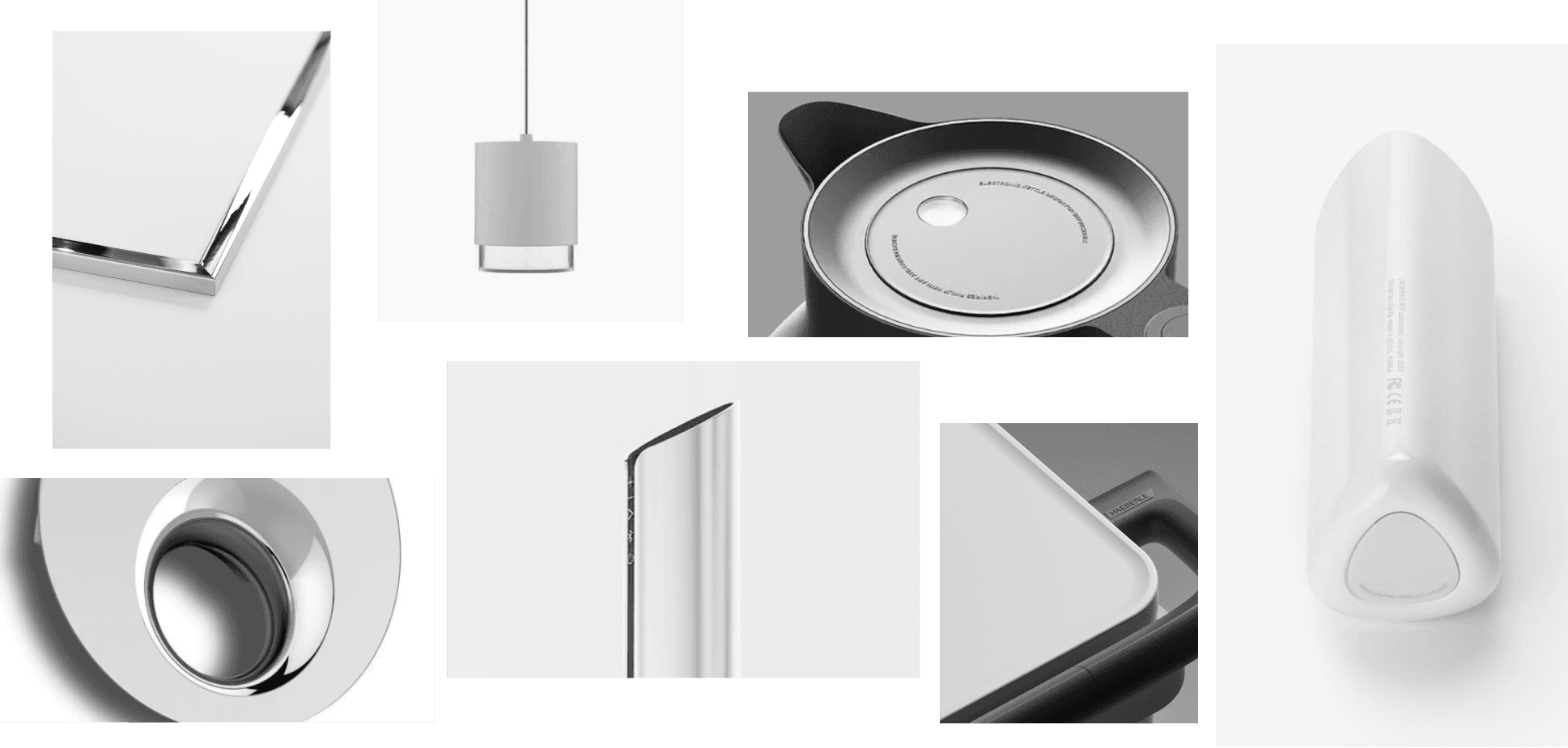 The prototype was 3D printed in ABS, with all parts finished in paint, while the decorative ring was metallized to replicate the final production look.