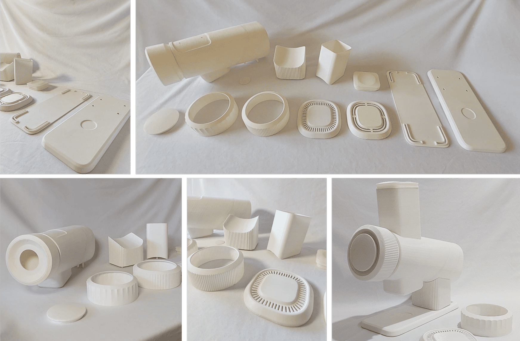 The prototype was 3D printed in PLA at a full 1:1 scale to accurately represent the final product’s form and proportions.